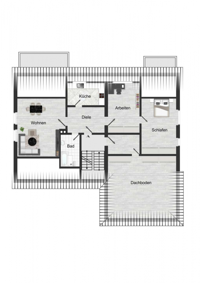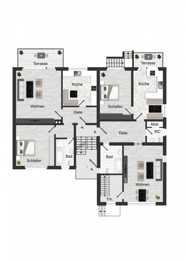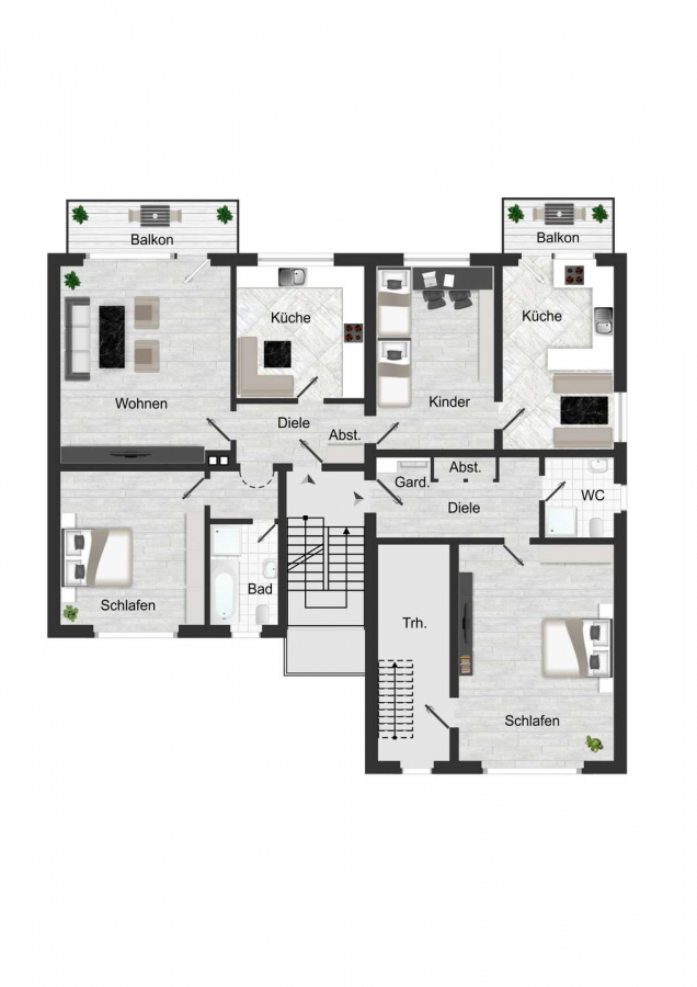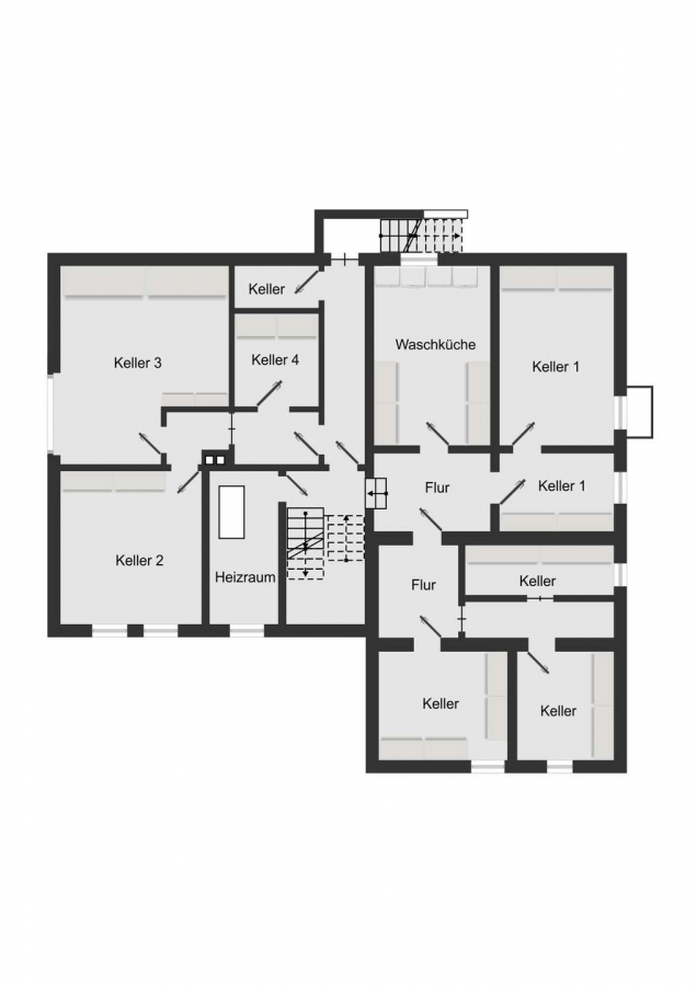 Die Liegenschaft bietet insgesamt vier großzügig geschnittene Wohnungen mit unterschiedlichen Wohnflächen und klaren, individuellen Grundrissen. Die beiden Erdgeschosswohnungen verfügen über ca. 144 m² sowie ca. 75 m² Wohnfläche; die größere Einheit erstreckt sich dabei über zwei Ebenen und bietet ein besonders großzügiges Raumgefühl. Im ersten Obergeschoss steht eine beeindruckend geräumige Wohnung mit ca. 116 m² zur Verfügung, während das Dachgeschoss eine weitere gut geschnittene Einheit mit rund 81 m² Wohnfläche beherbergt.