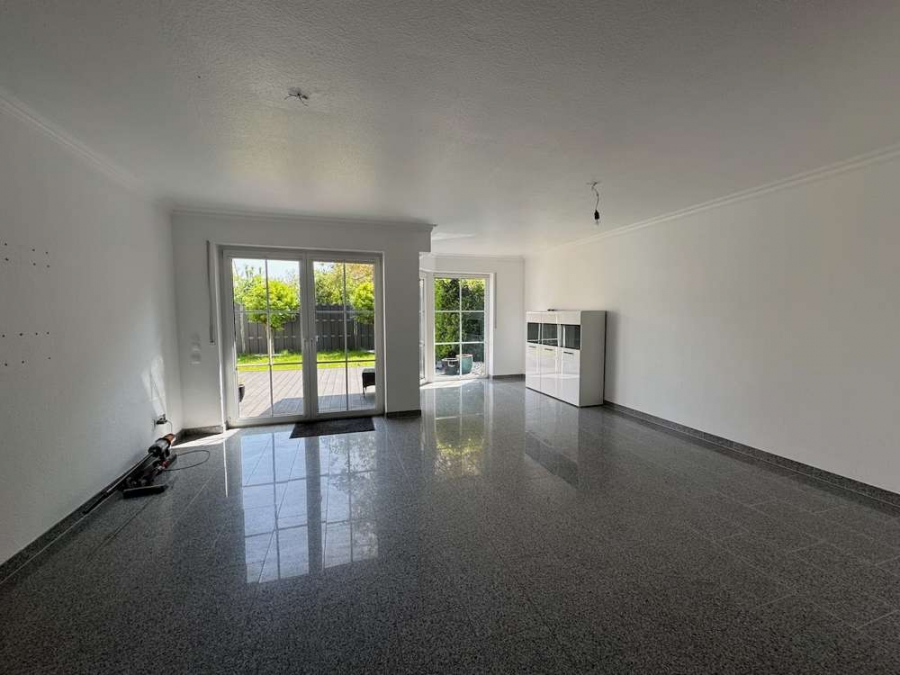 Der ca. 30 m² große Wohn- Essbereich mit großer Fensterfront zum Garten verfügt über mehrere Zugänge zur Terrasse. Der Raum lässt sich flexibel als Wohn- und Essbereich oder als reiner Wohnraum nutzen.