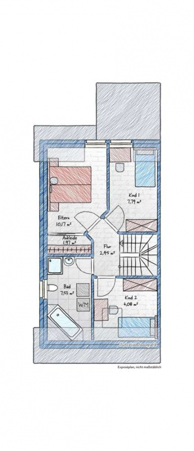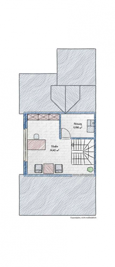 Die Schlafräume im Obergeschoss sind mit einem freundlichen, hellen Parkettboden ausgestattet, während das großzügige Dachstudio mit Teppichboden und einer modernen Klimaanlage (2020) aufwartet – ideal als Arbeits-, Gäste- oder Rückzugsbereich. Eine Design-Stahltreppe (2022) verbindet das Obergeschoss stilvoll mit dem Dachstudio.