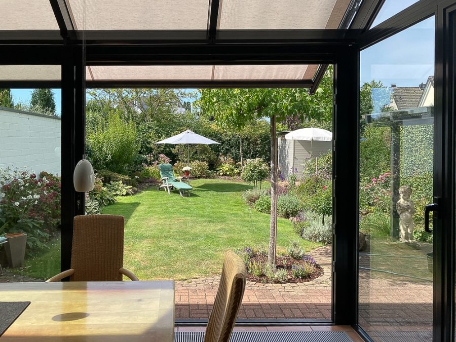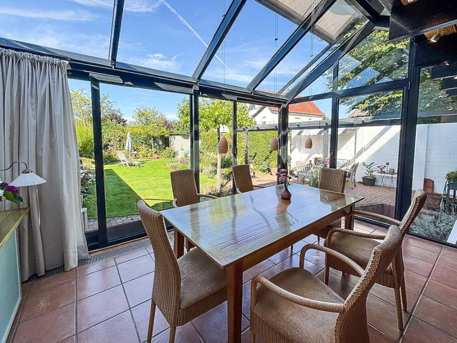 Ein Highlight des Hauses ist der im Jahre 2000 angebaute Wintergarten. Dieser erweitert den Wohnbereich erheblich, sorgt für eine tolle Belichtung und gibt den Blick in den liebevoll angelegten Garten frei.Selbstverständlkich wurde der WIntergarten baurechtlich genehmigt, sämtliche Unterlagen hierzu liegen vor.
