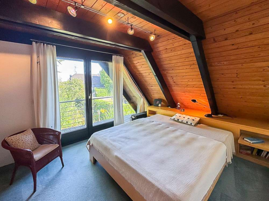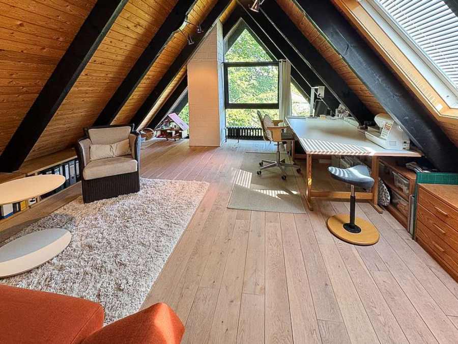 Das Haus wurde im Jahre 1976 errichtet und seitdem gehegt und gepflegt. Die Wohnfläche von insgesamt ca. 120 Quadratmetern verteilt sich auf das Erd- und Obergeschoss sowie auf das ausgebaute Dachstudio. Insgesamt stehen ein Schlafzimmer und zwei Kinderzimmer zur Verfügung. Das modernisierte Tageslicht-Bad verfügt über eine Wanne und eine Dusche.
