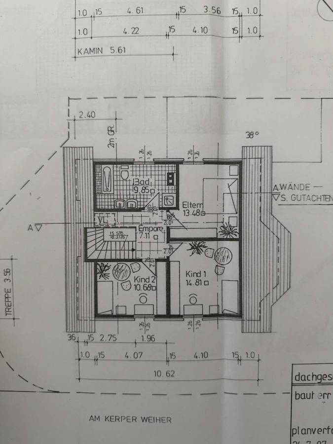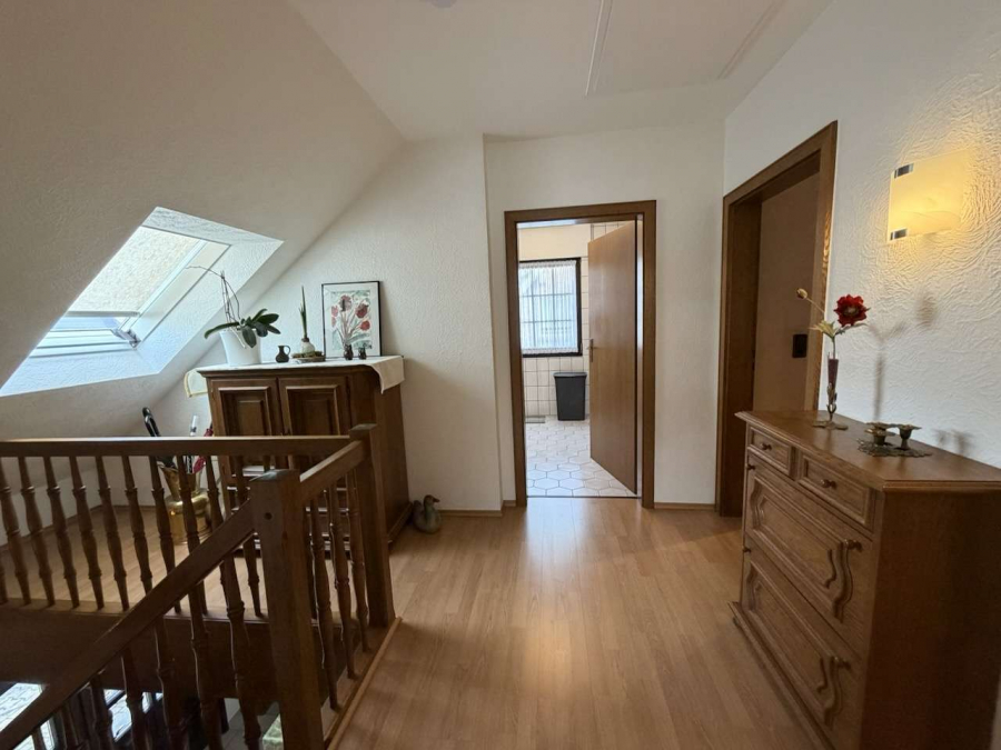 Das Tageslichtbad im Dachgeschoss verfügt über Doppelwaschtisch, Badewanne sowie separate Dusche. Die Schlafräume bieten durch die Dachschrägen eine gemütliche Wohnatmosphäre und wurden teilweise mit neuen Bodenbelägen ausgestattet.