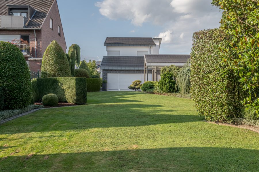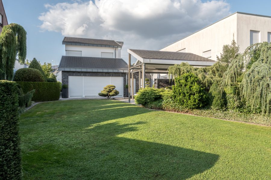 Aber Sie werden nicht nur von der Ausstattung im Haus begeistert sein, auch die Außenanlagen sind mit Formgehölzen, Hecken und Beeten gärtnerisch angelegt. Neben der Terrasse befindet sich ein überdachter Freisitz, der zum gemütlichen Verweilen einlädt.