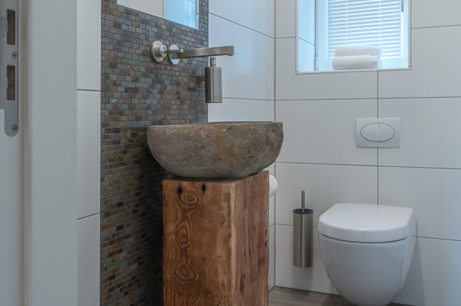Auch die Bäder mit Natursteinelementen, hochwertiger Ausstattung und einem Händchen für das Besondere lassen keine Wünsche offen.
