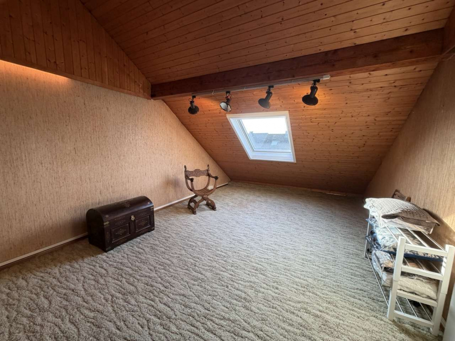 Insgesamt stehen fünf gut geschnittene Räume zur Verfügung: ein großzügiges Wohnzimmer, ein Elternschlafzimmer, zwei Kinderzimmer sowie ein zusätzlich ausgebautes Dachgeschoss, das sich ideal als Arbeits-, Hobby- oder Gästebereich eignet. Das Haus ist vollständig unterkellert und bietet damit reichlich Stauraum sowie zusätzliche Nutzungsmöglichkeiten.