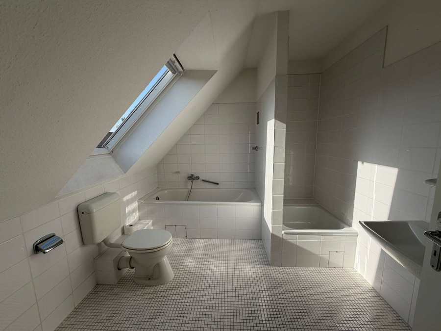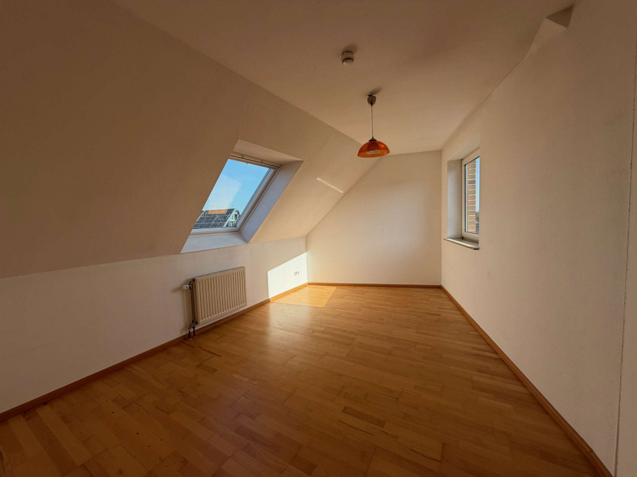 Die Wohnung präsentiert sich hell und freundlich und durch die Dachschrägen sehr gemütlich.