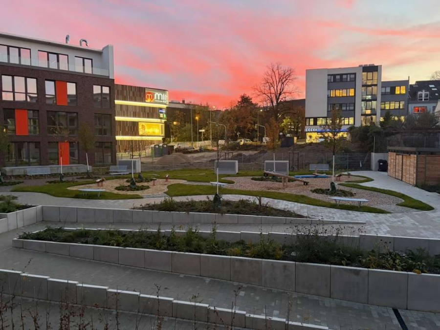 Ein besonderes Highlight ist die großzügige, nur den Bewohnern vorbehaltene Parkanlage im Innenbereich des Quartiers. Sie schafft nicht nur Grünflächen und Aufenthaltsqualität, sondern unterstreicht auch das durchdachte Gesamtkonzept des Quartiers als Ort zum Wohlfühlen.